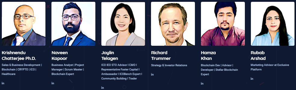 हा फान: संस्थापक और सीईओजियांग टोंग: मुख्य विपणनक्वान फाम: मेन सेल्सतुंग गुयेन: ब्लॉकचेन एप्लिकेशन डेवलपरलॉन्ग ले: कम्युनिटी मैनेजर